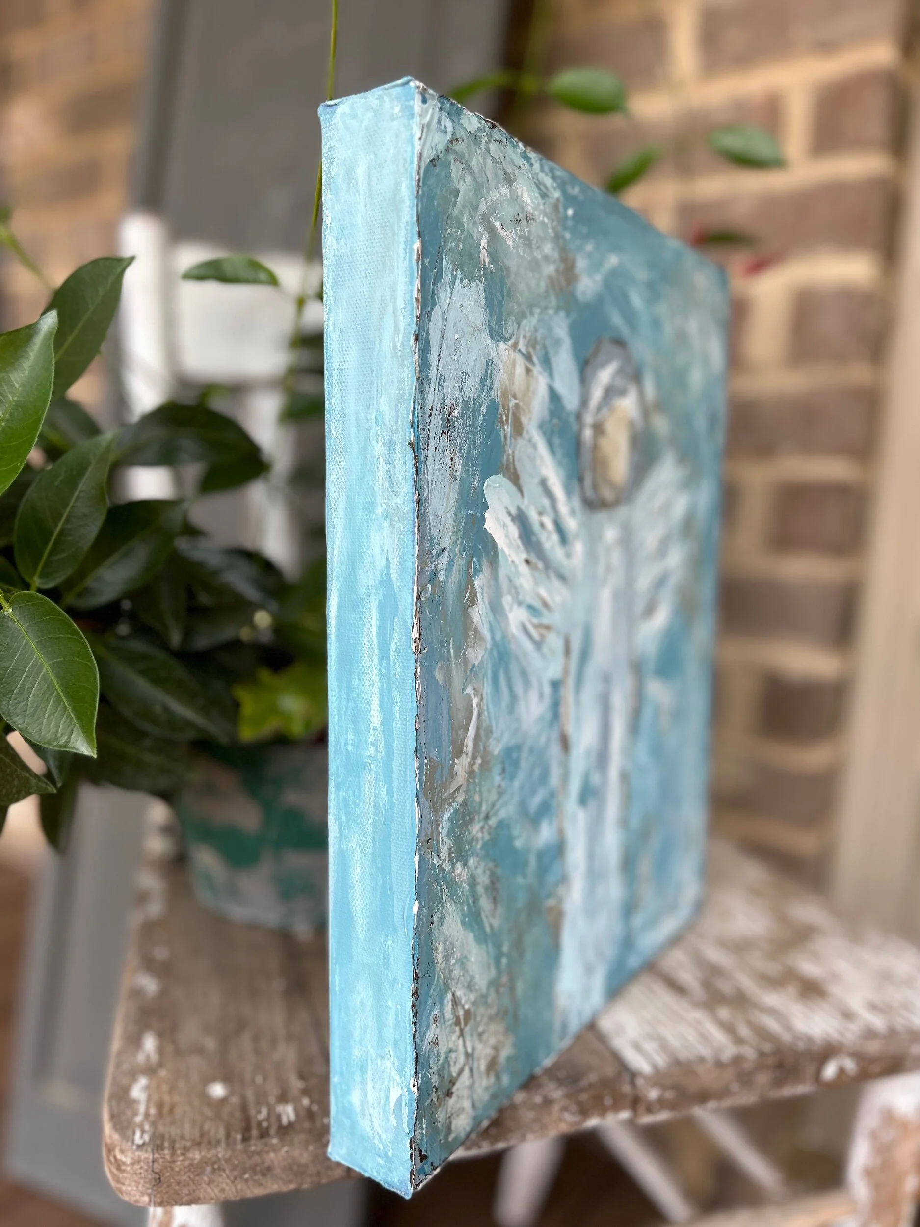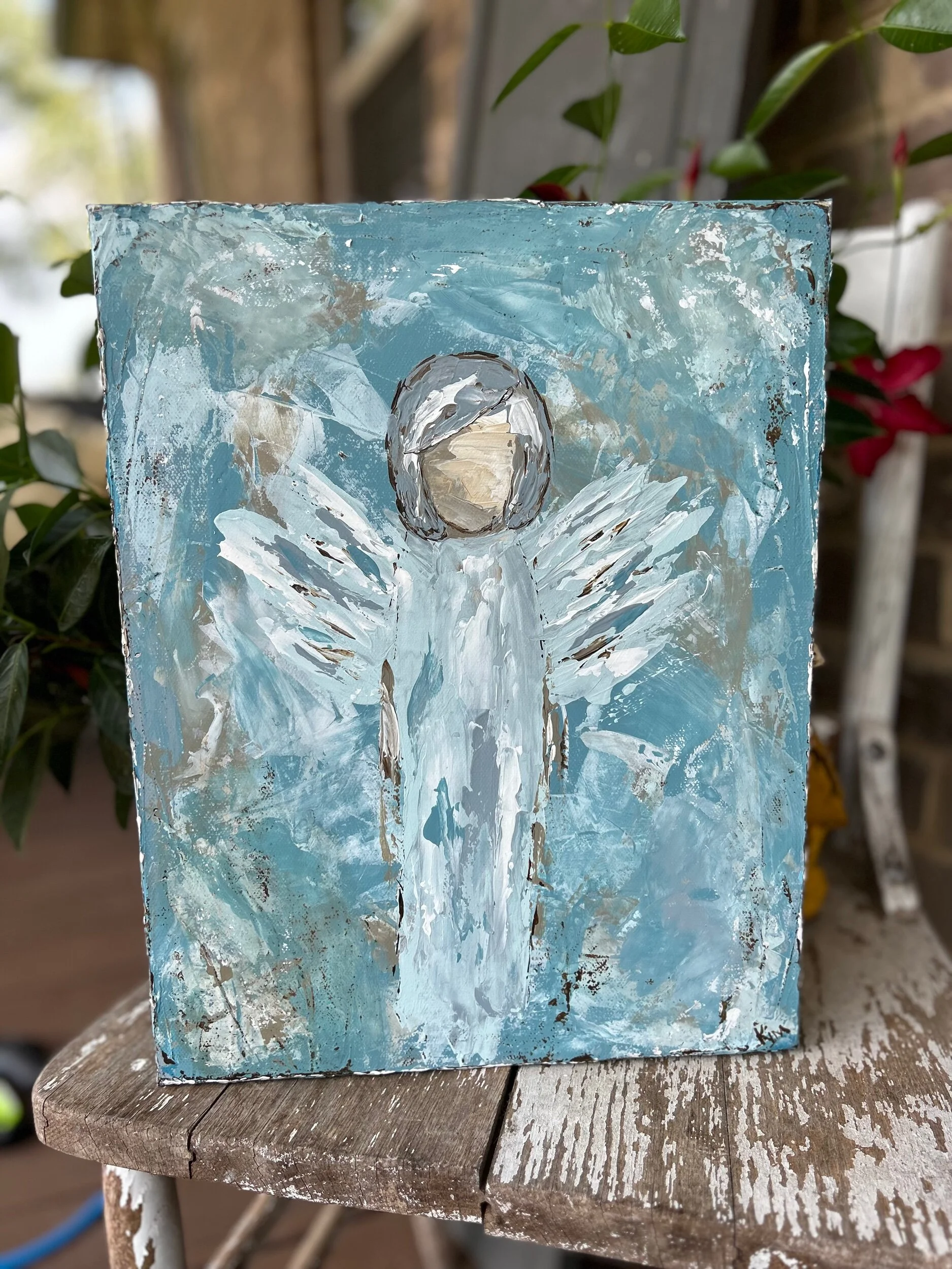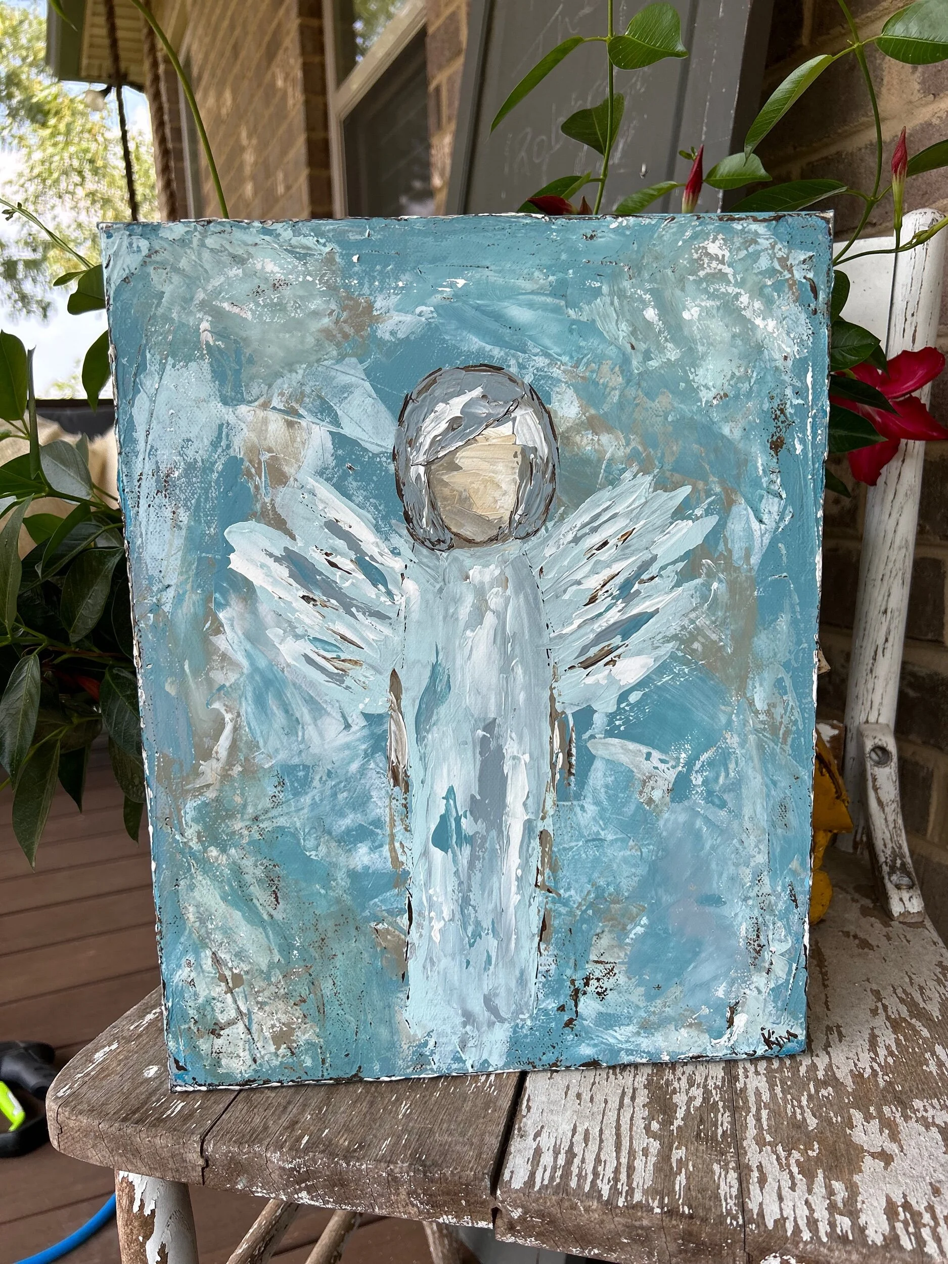 Abstract angel in muted blue and gray tones. 11in X 14in